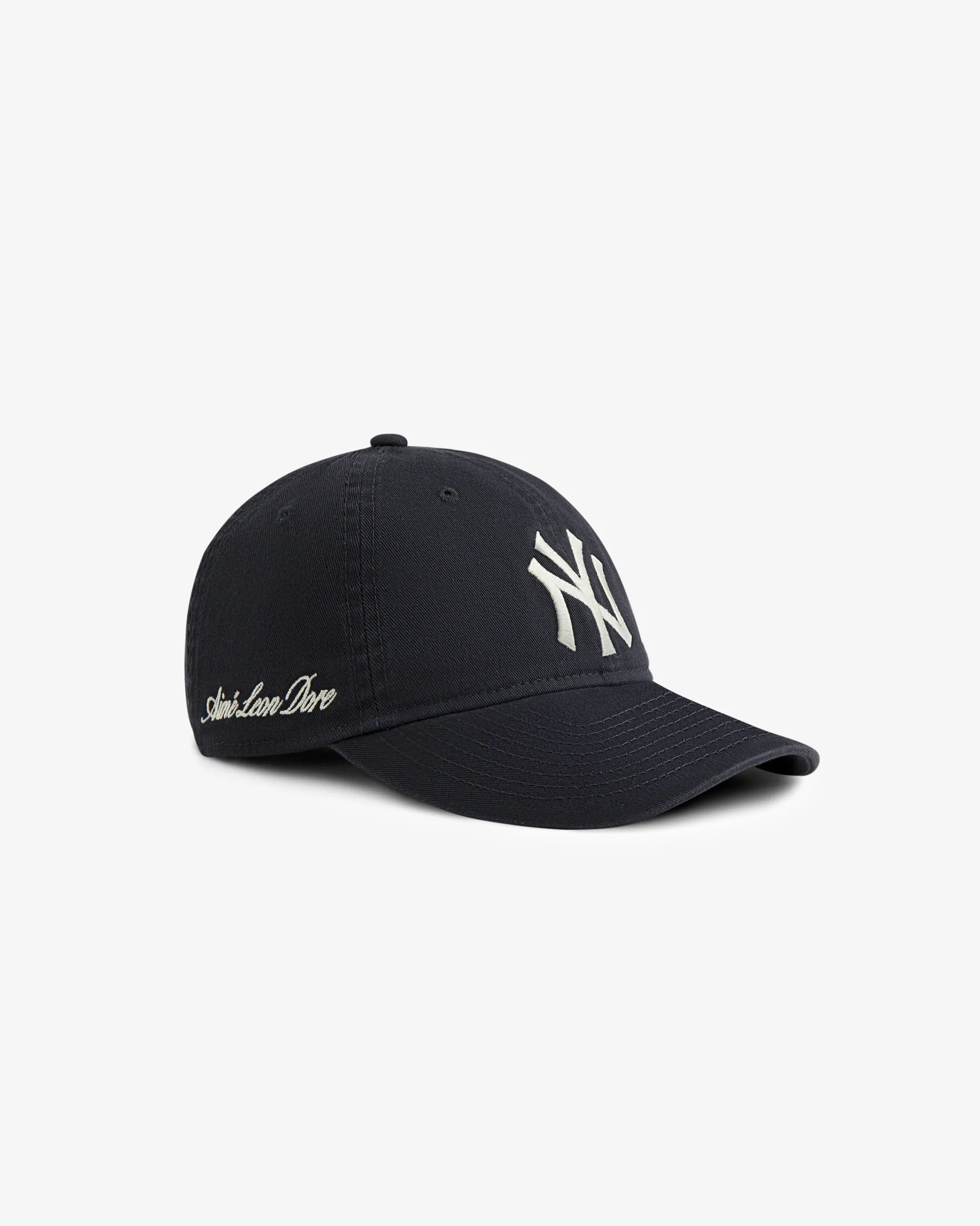 - • Navy hat• Washed cotton fabric• Embroidered New York Yankees logo at front• Embroidered Aimé Leon Dore logo at side• Unstructured 6-panel construction• Stitched eyelets• Adjustable strapback with antique brass buckle• 100% Cotton• Hand wash• Imported