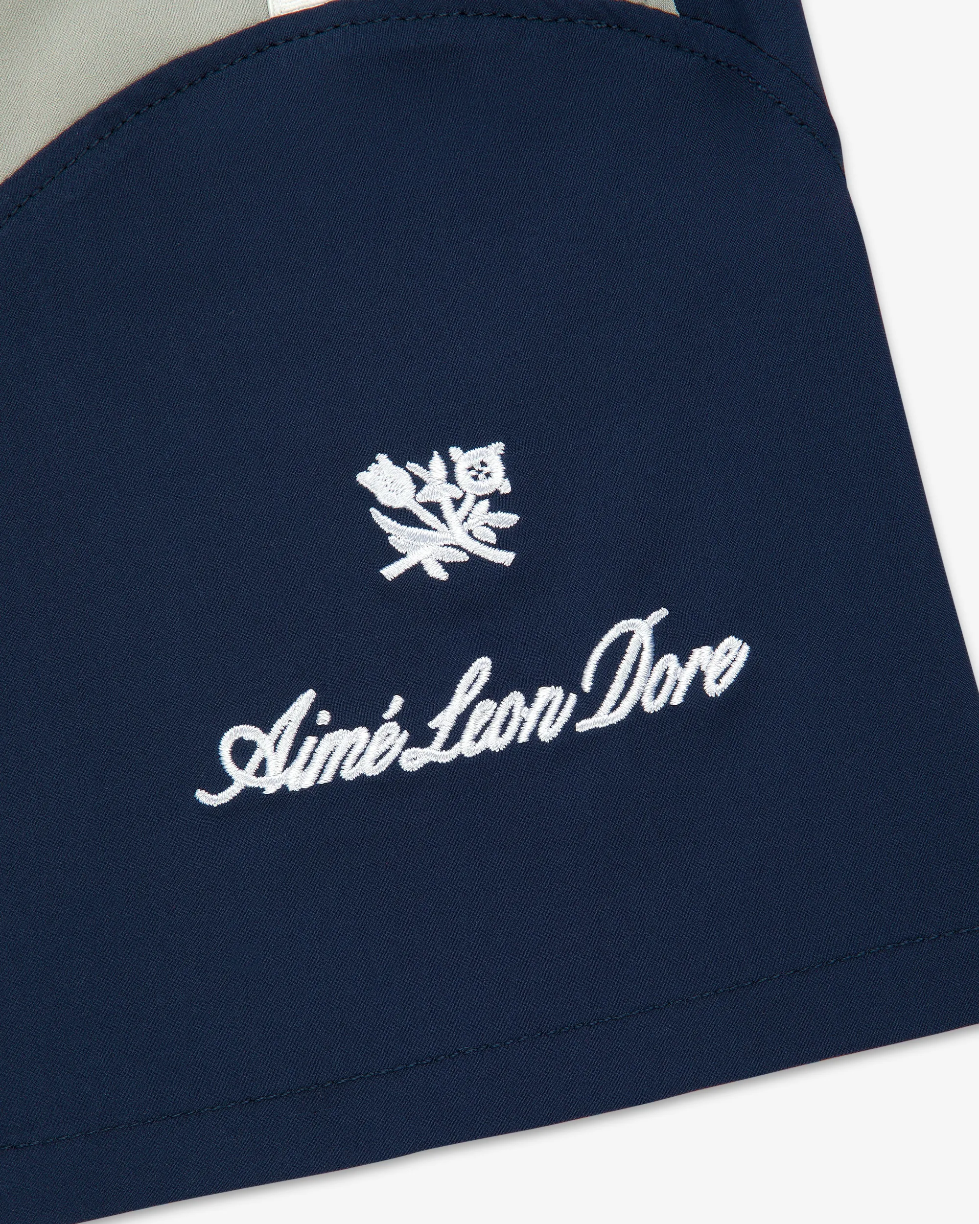 - • Navy shorts• Contrast paneling at sides• Embroidered New York Yankees logo at left leg• Embroidered Aimé Leon Dore logo at right leg• Straight fit• Elasticated waist with interior drawstrings• Two hand pockets at side seams• 90% Polyester, 10% Elastane• Machine wash or dry clean• Made in Vietnam
