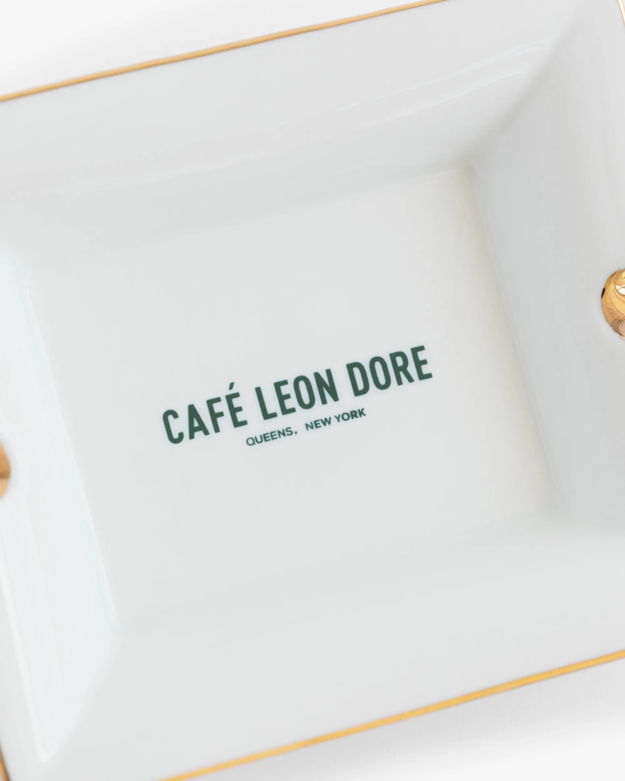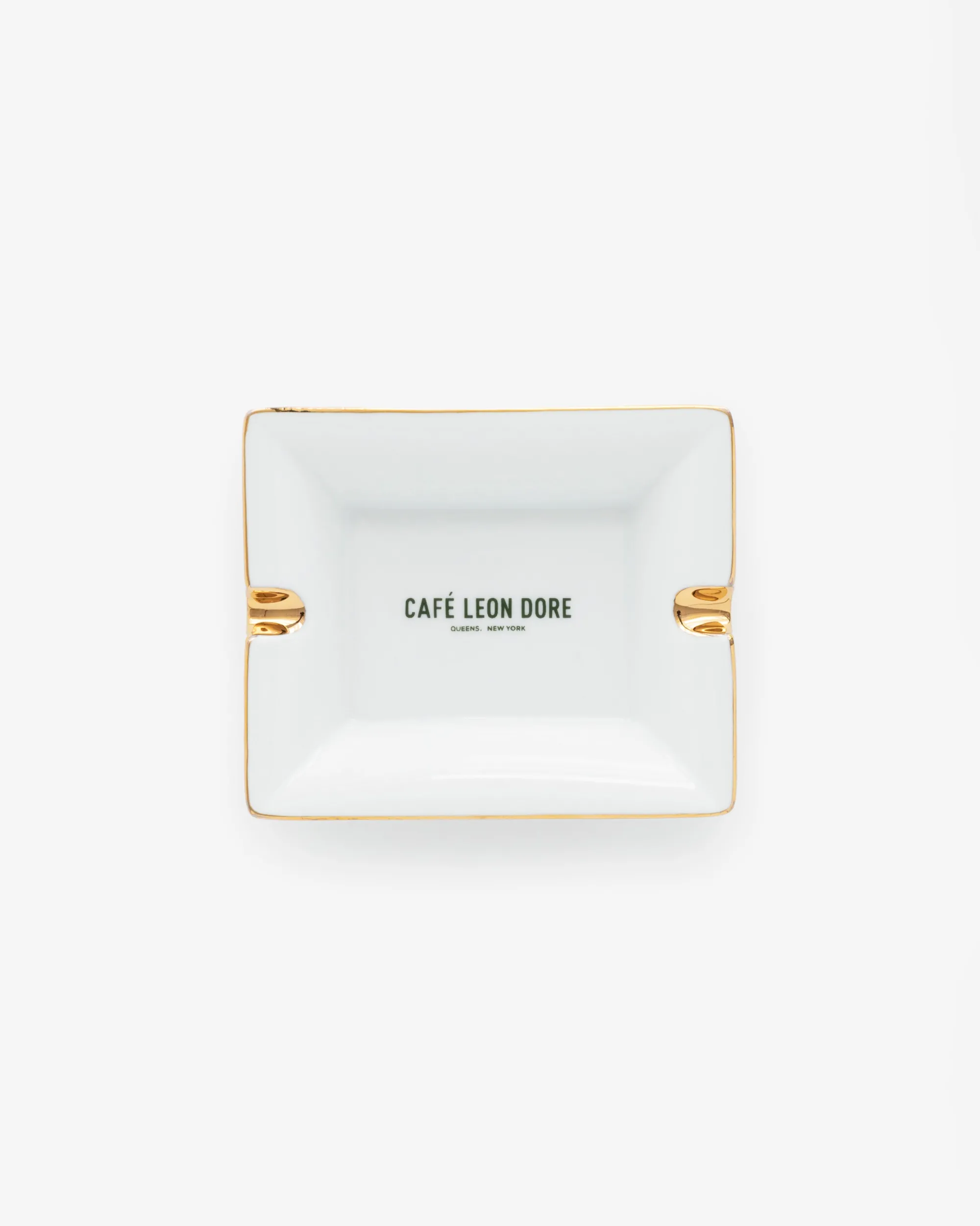 - • White porcelain ashtray• Printed Café Leon Dore logo• Gold trim• 100% Porcelain• Hand wash only• Not safe for use in microwave• Made in USA