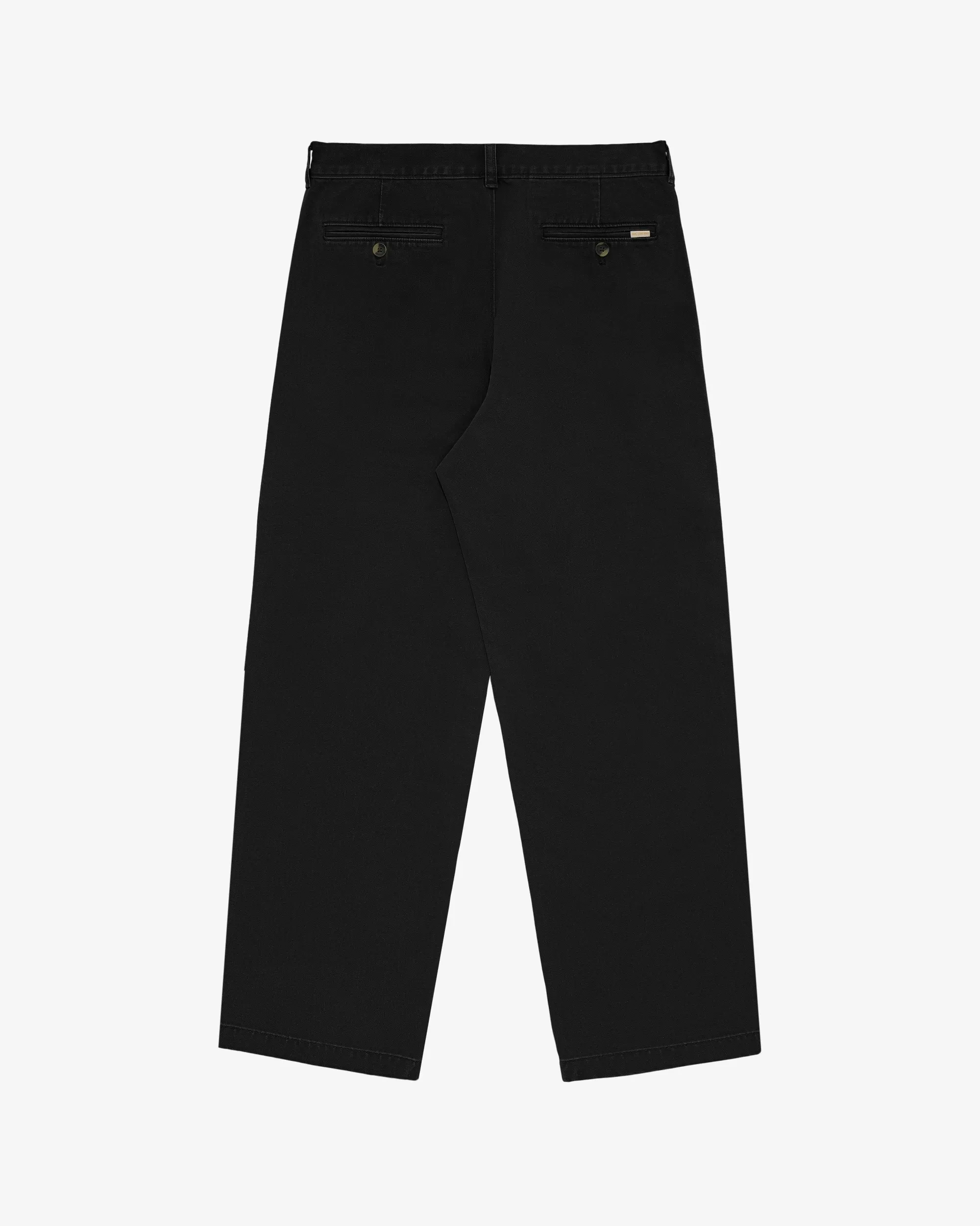 - • Black chino pants• Two darts at back• Straight fit• Button closure with zipper fly• Two hand pockets at side seams• Two double welt pockets at back with button closure• Features branded woven loop label• 100% Cotton• Machine wash• Made in China