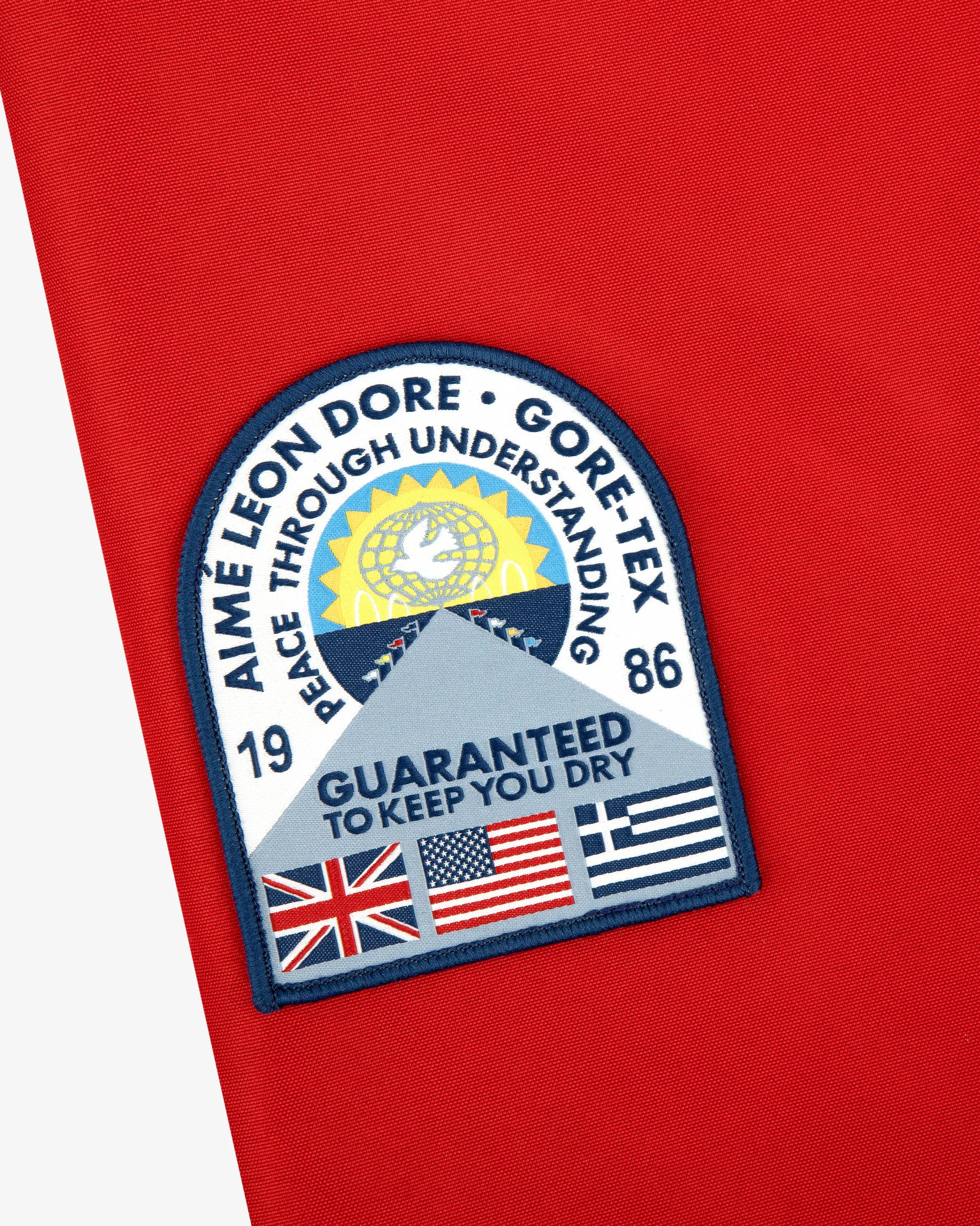 - • Red, yellow, & navy jacket• GORE-TEX waterproof fabric guaranteed to keep you dry• Applied Aimé Leon Dore & GORE-TEX patch at right sleeve• Embroidered GORE-TEX logo at left sleeve• Printed GORE-TEX logo at back• Hood with brim• Bungee with cord locks at hood & hem• Velcro adjuster tabs at sleeves• Seal tape at seams• Metal eyelets• Regular fit• Placket at front with zip closure & concealed snaps• Two zipper pockets at chest• Two zipper pockets at side seams• One zipper pocket at left sleeve• One zipper pocket at interior• One mesh pocket at interior• Body: 87% Polyester, 13% Polyurethane• Body Lining: 100% Polyester• Hood & Sleeve Lining: 100% Nylon• Machine wash• Please note: The new ePE membrane technology is lighter and thinner, but just as strong and durable. While the outer fabric may dampen slightly faster, this does not compromise the garment’s waterproof performance. If you notice the fabric wetting out more quickly, simply wash and dry it to remove any oils and restore its water-repellent coating.• Made in China