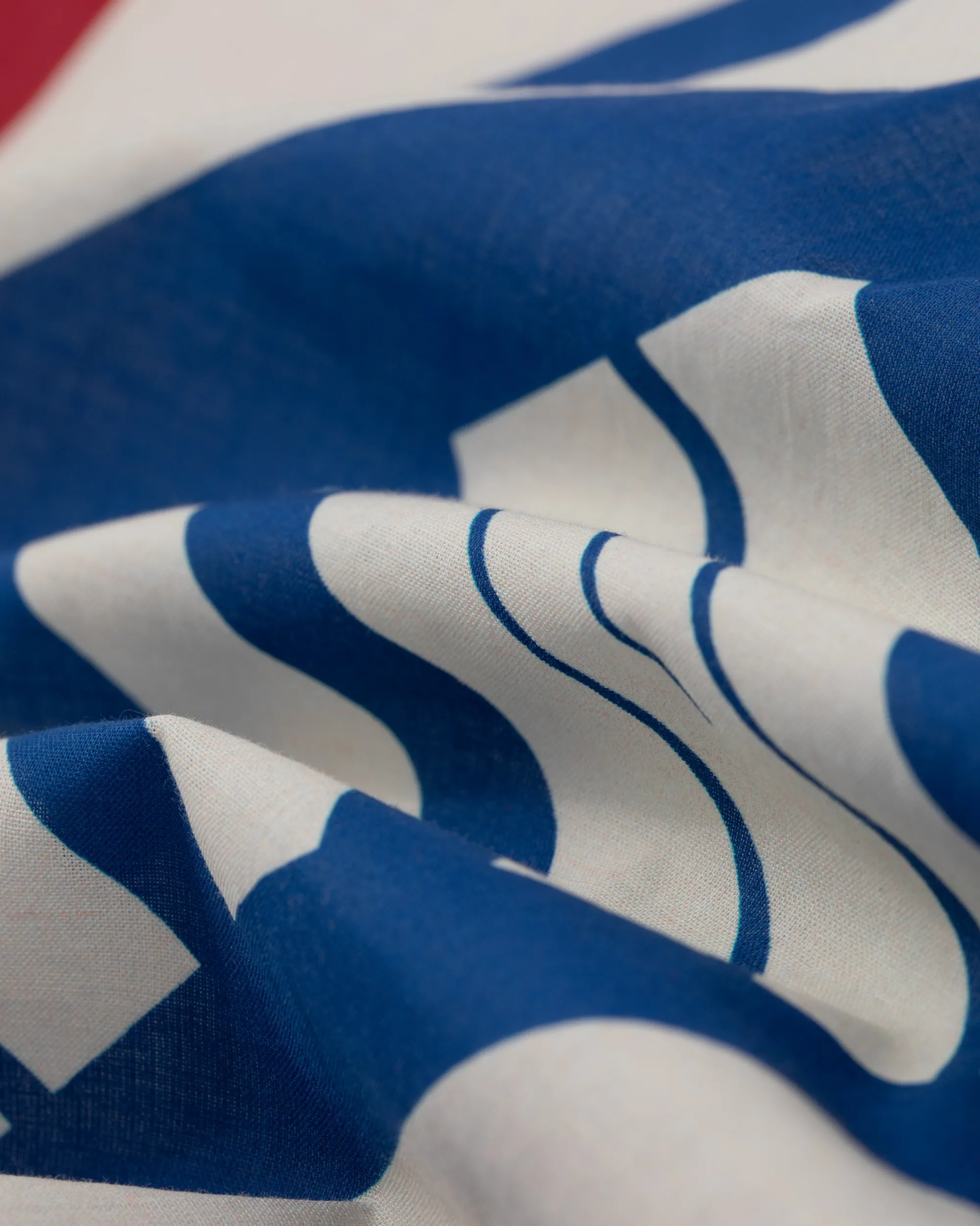 - • Cream, blue, & red bandana• Printed polka dot graphic throughout• 100% Cotton• Hand wash• Made in China
