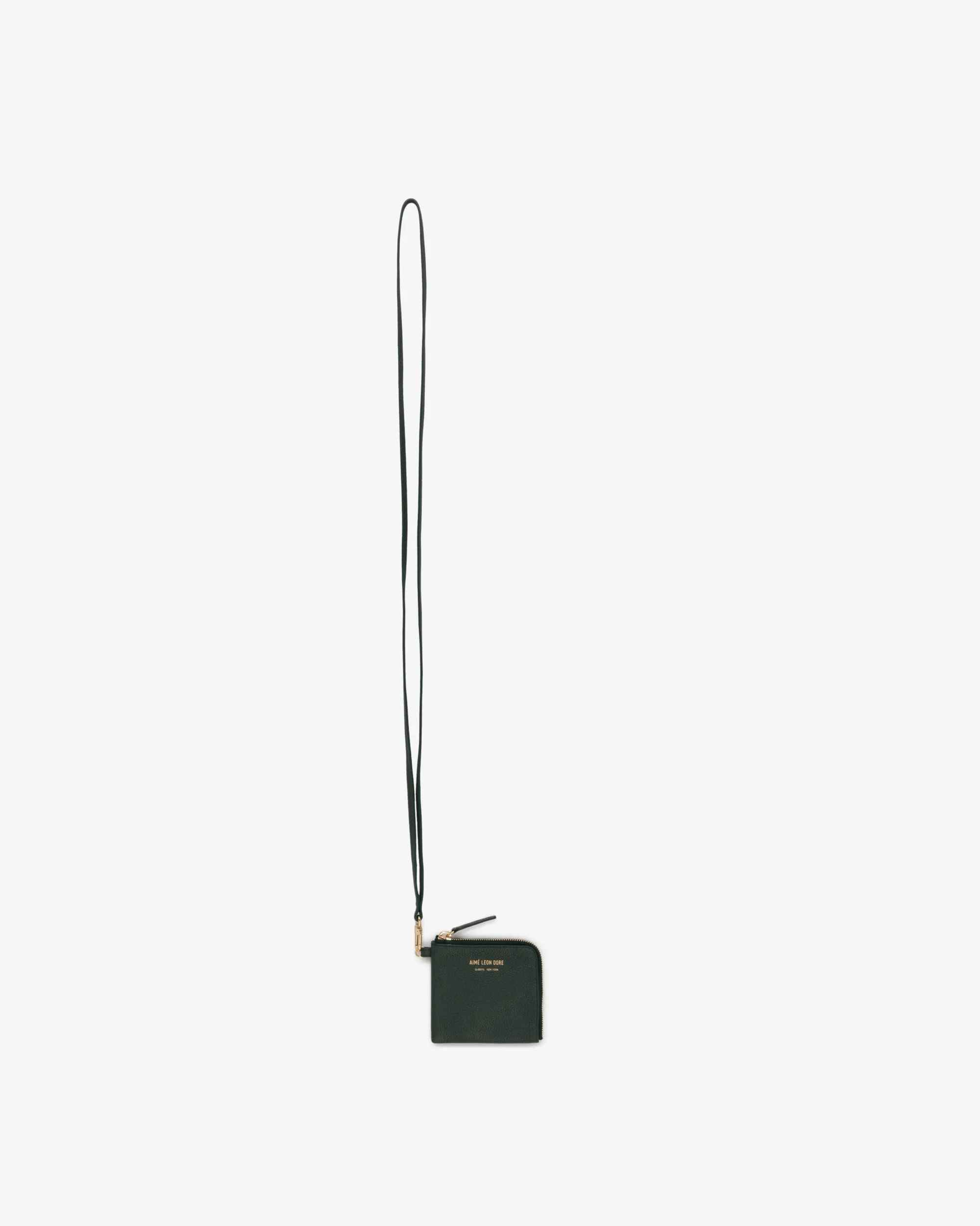 - • Green zip wallet• Genuine leather• Gold foil debossed logo at front• Metal zip with leather pull• Interior divider• Detachable lanyard• Hardware: Zamac & Brass• Body: 100% Calf Leather• Lining: 100% Polyester• Wipe clean• Made in Spain
