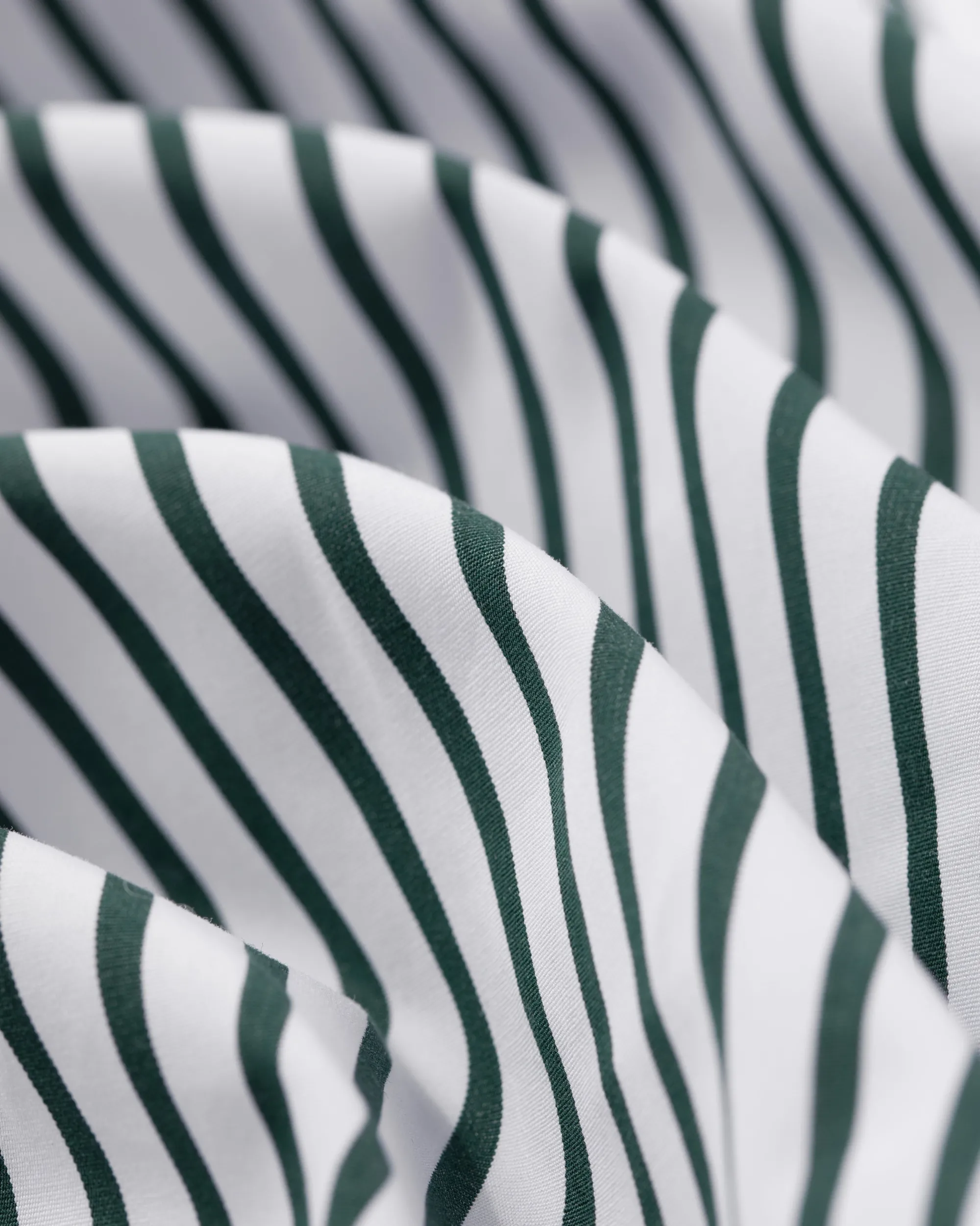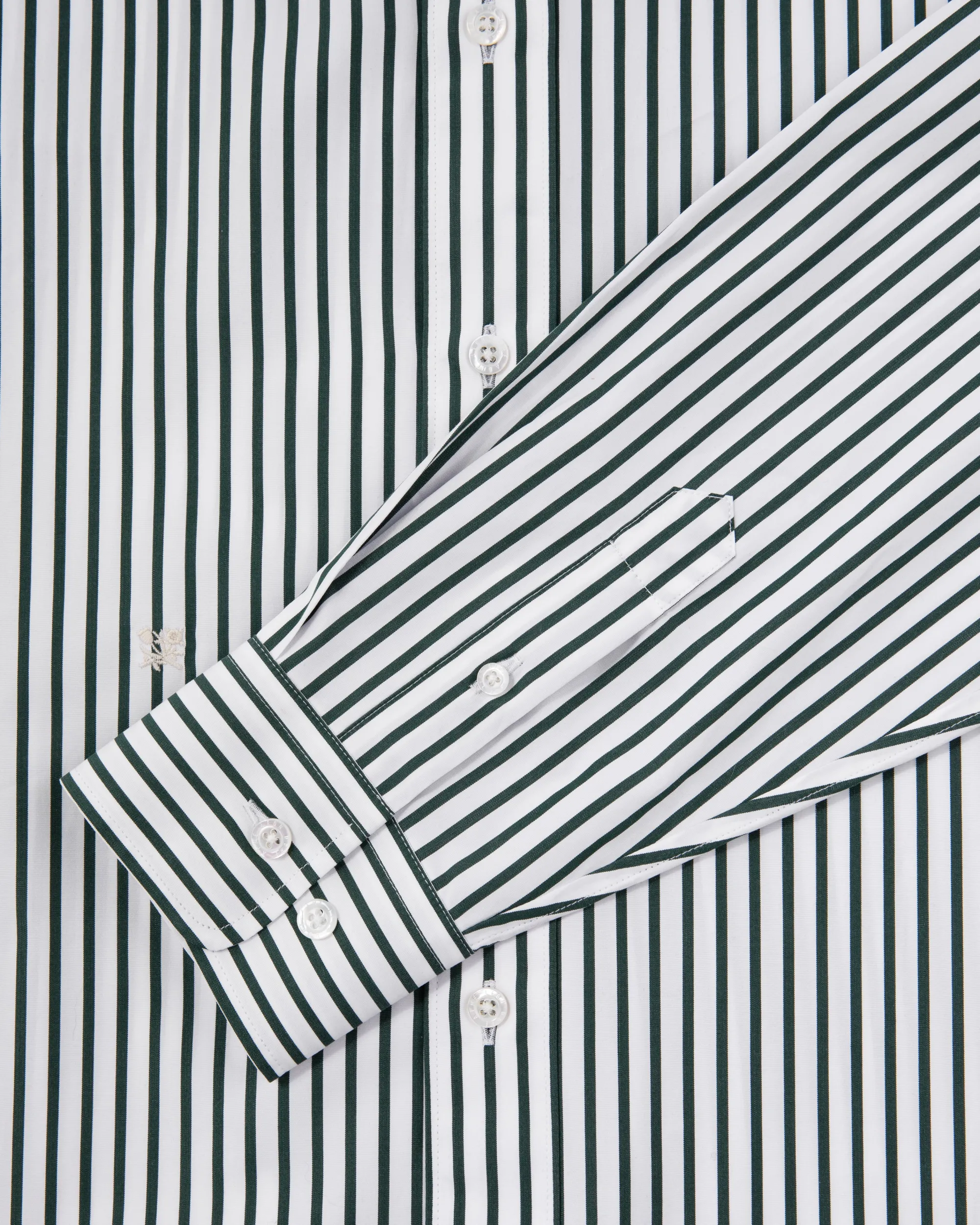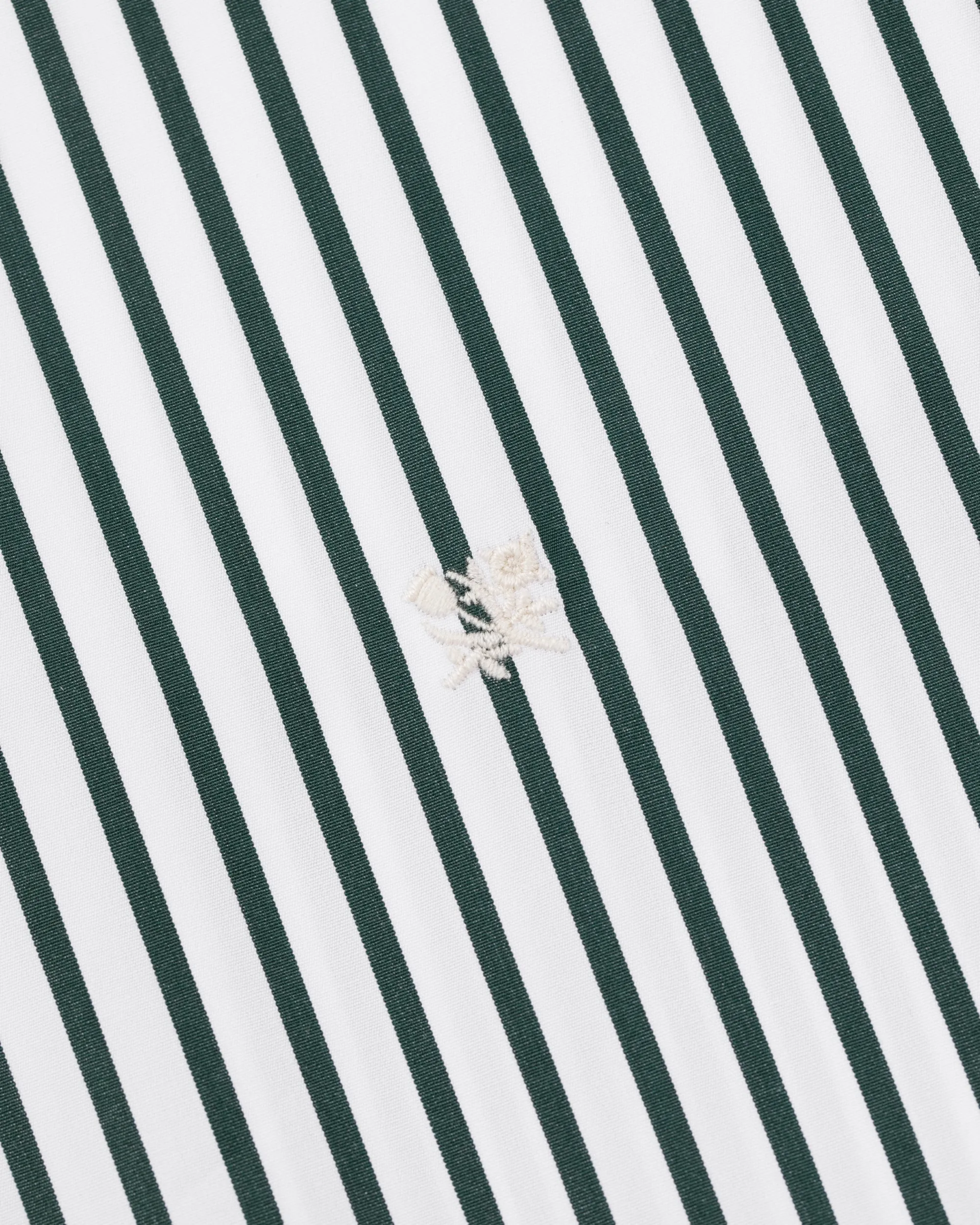 - • Green & white striped shirt• Yarn dyed cotton fabric• Embroidered Queens crest at lower right front• Collar with collar stand• Regular fit• Pleats at sleeves with button closure• Double pleat at back yoke• Button closure at front• 100% Cotton• Machine wash• Made in Portugal
