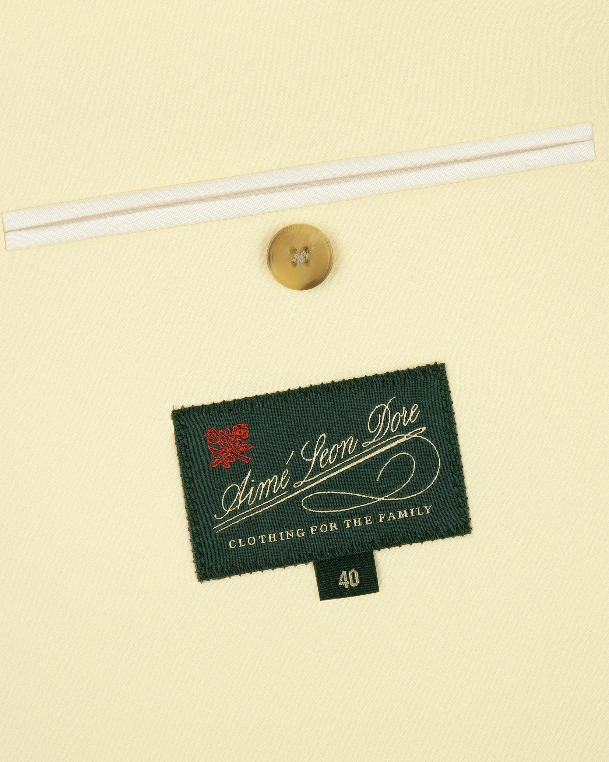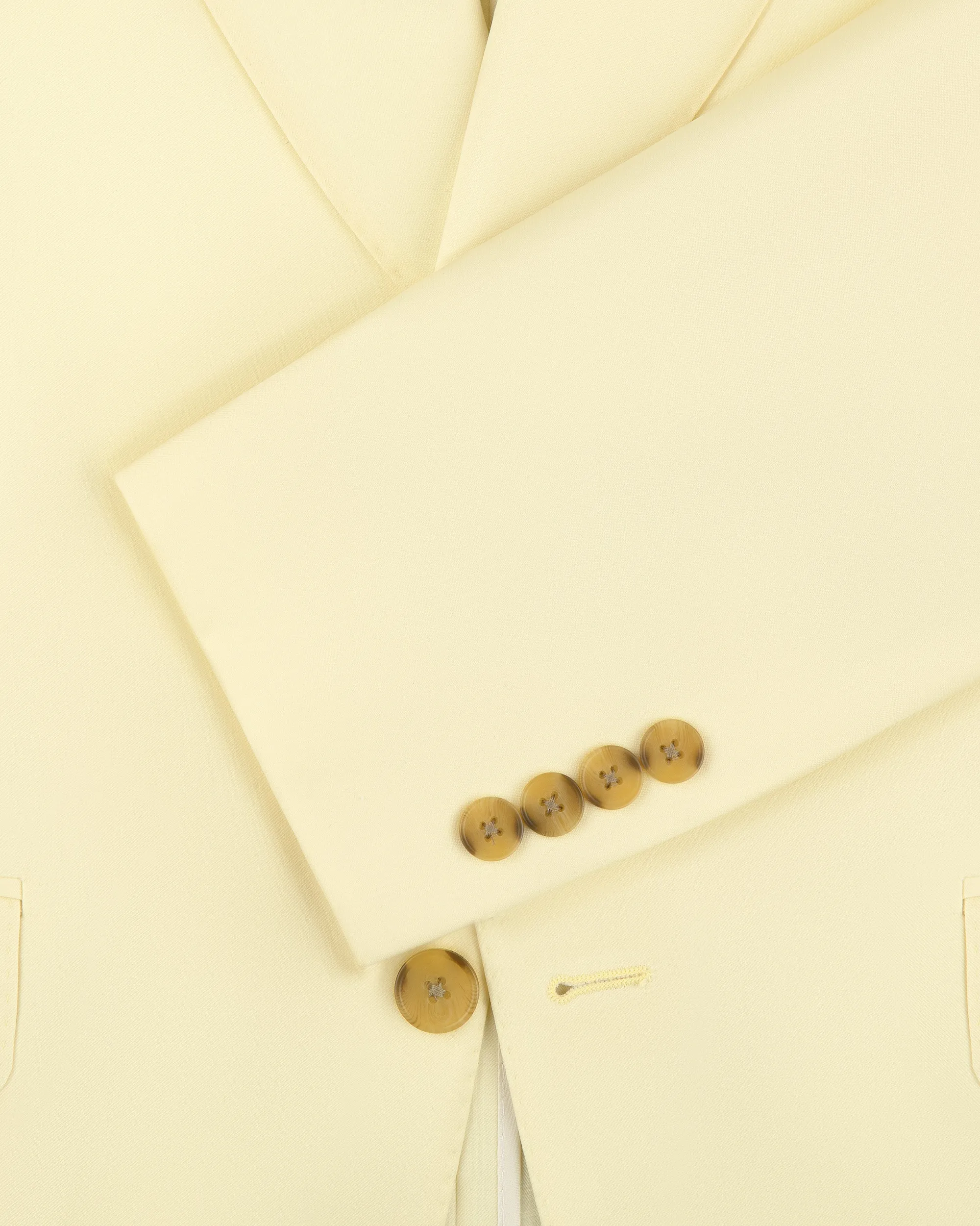 - • Yellow suit jacket• Virgin wool fabric• Single breasted with peak lapel• Regular fit• Faux horn button closure at front• Two flap pockets at front• One slanted welt pocket at chest• Lined• Body: 100% Virgin Wool• Lining: 100% Cupro• Dry clean only• Made in USA