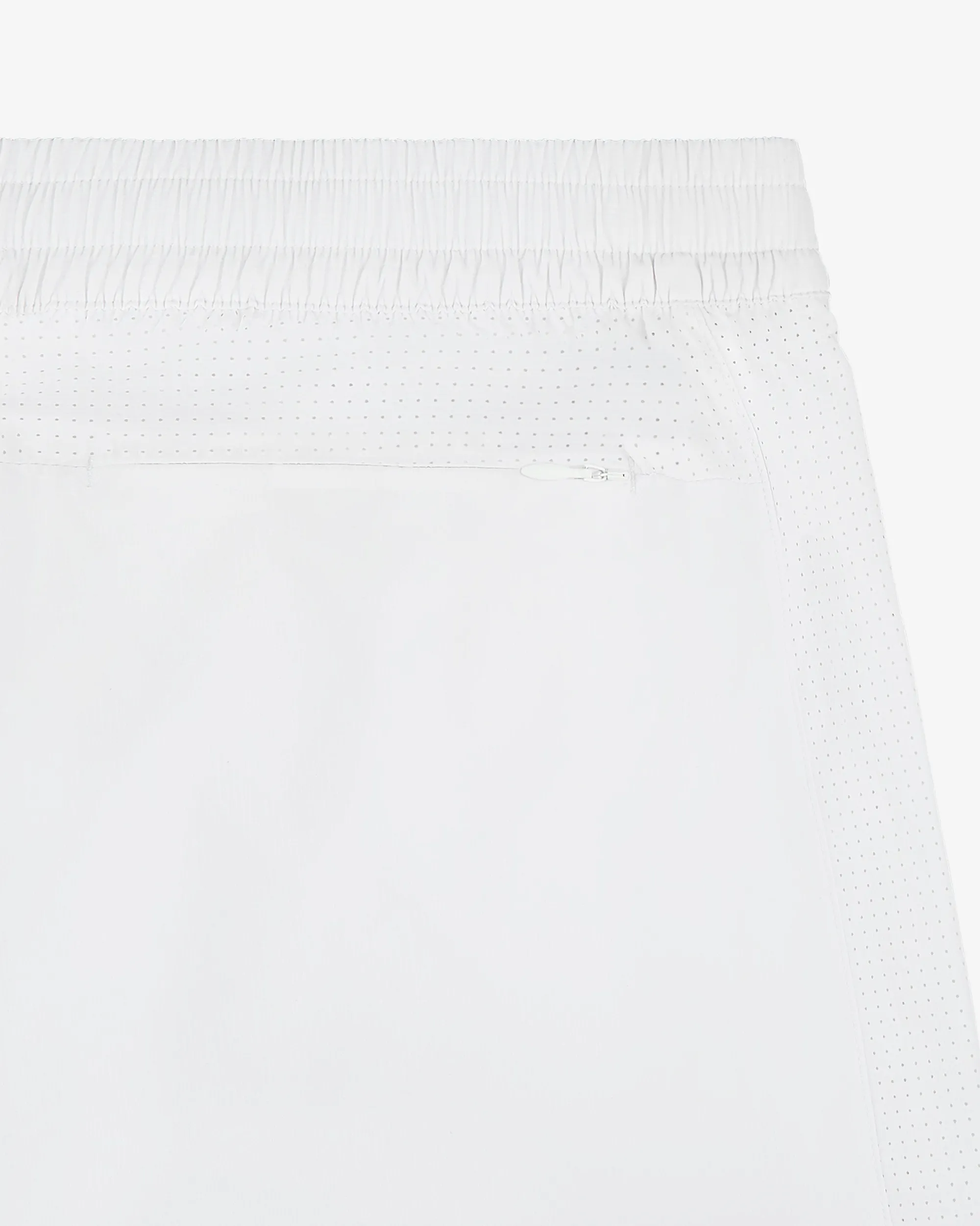 - • White shorts• Printed artwork at lower left leg• Contrast panels at sides• Cropped fit• Elasticated waistband with interior drawstrings• Two on-seam pockets at sides• One zipper pocket at back• 86% Nylon, 14% Elastane• Machine wash• Made in Vietnam
