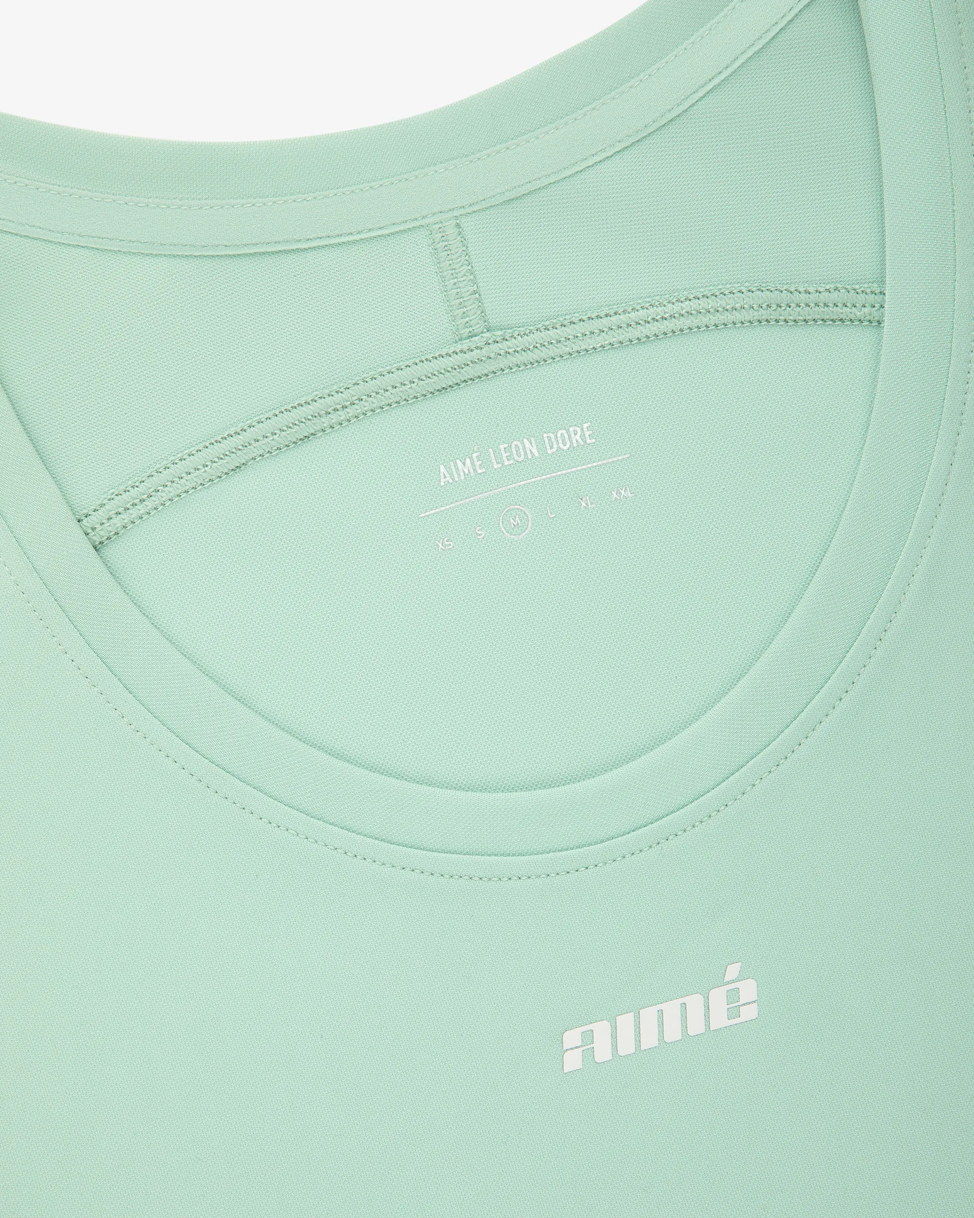 - • Green tank• Printed Aimé sport logo at front• Laser perforation at body• Regular fit• 100% Polyester• Machine wash• Made in China