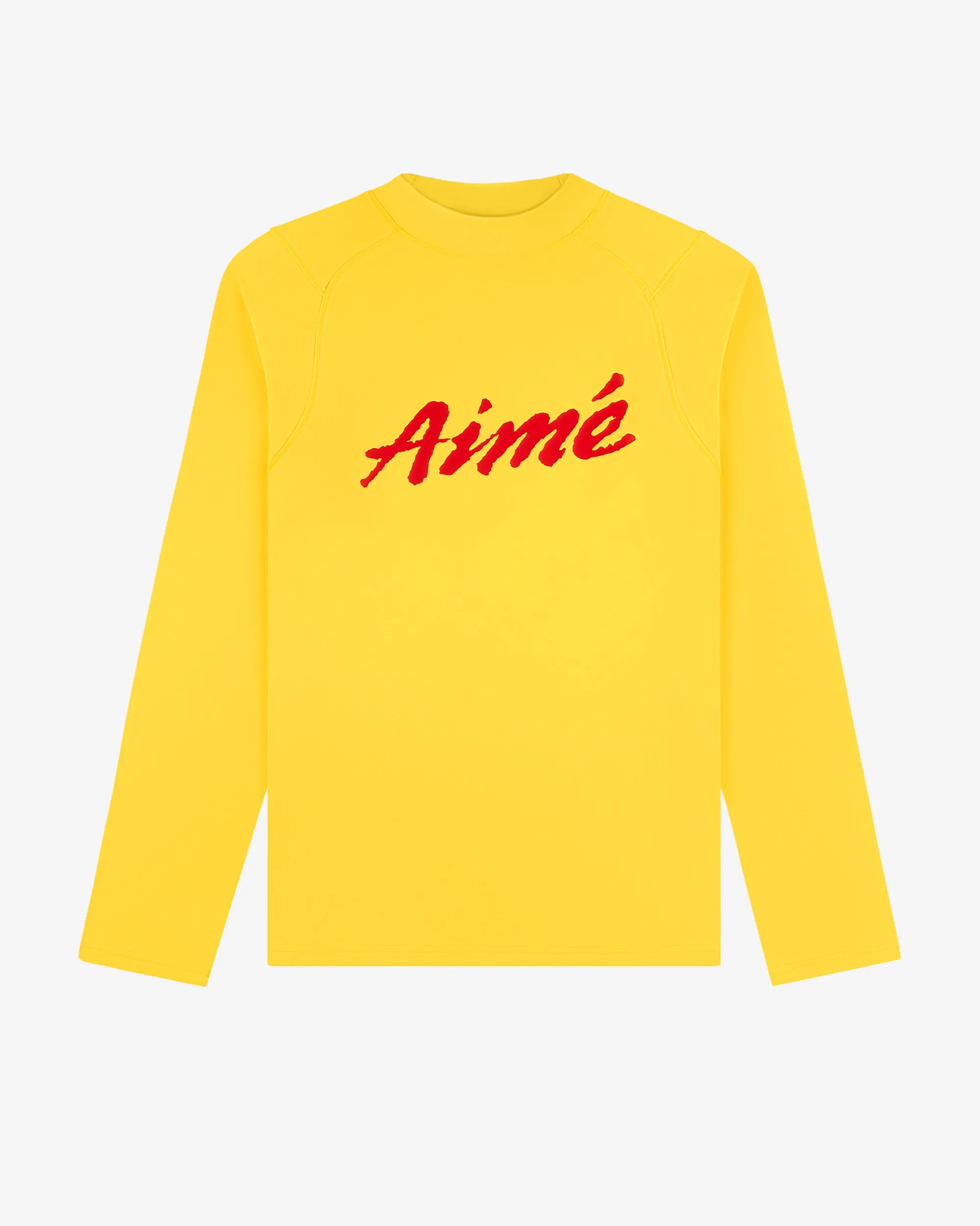 - • Yellow long-sleeve tee• Compression fabric• Printed Aimé sport logo at chest• Regular fit• 87% Polyester, 13% Elastane• Machine wash• Made in China