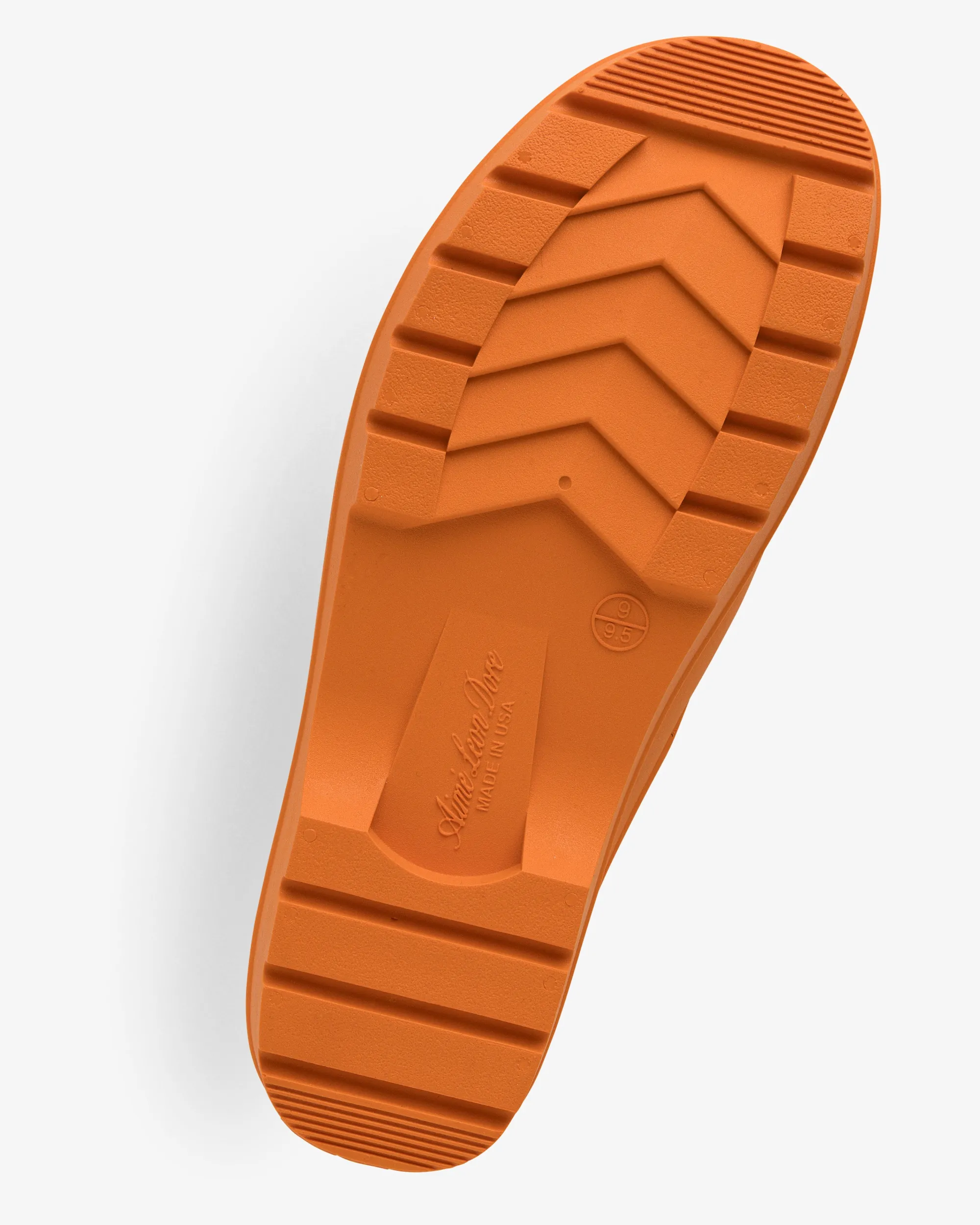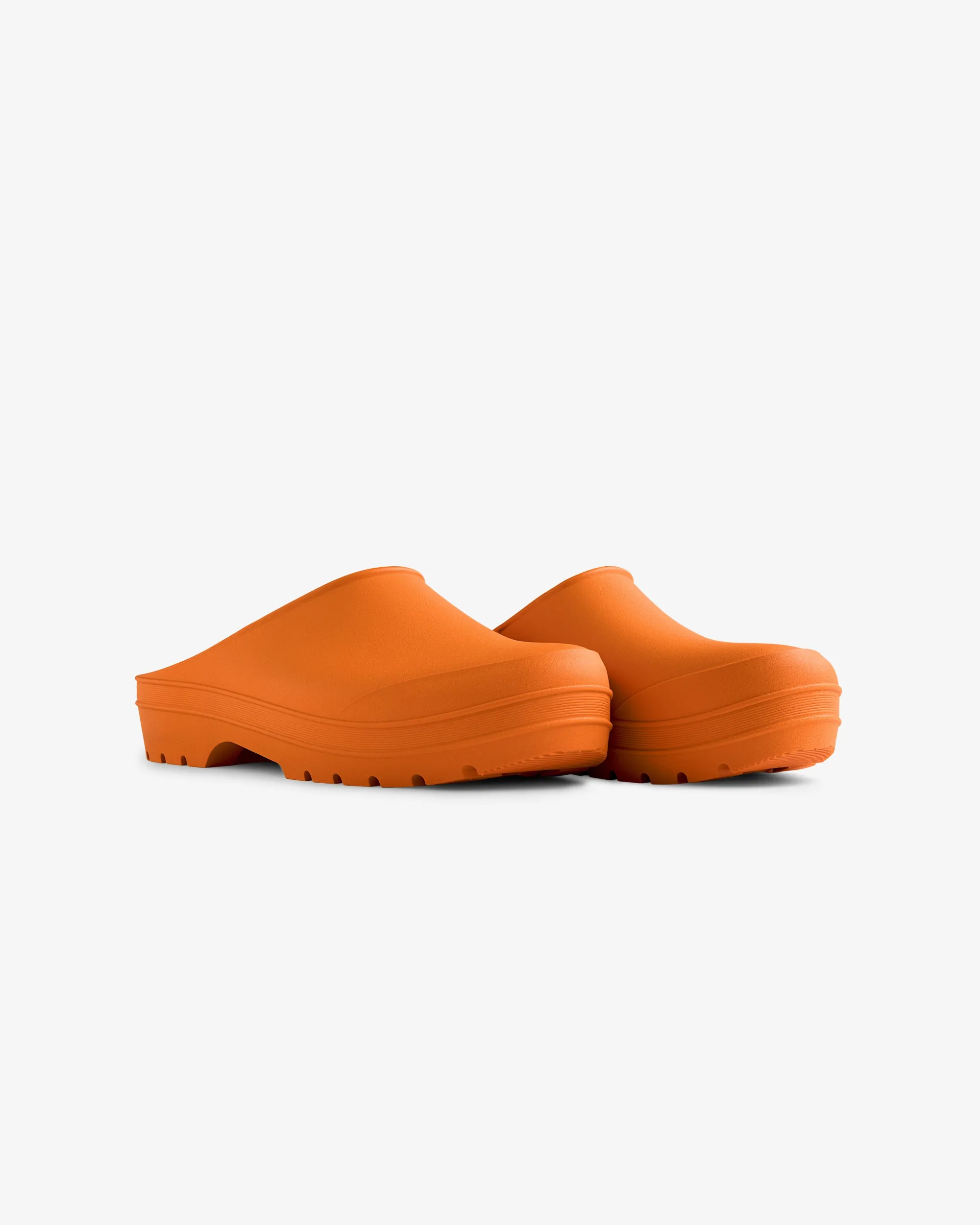 - • Orange garden mules• Embossed logo at heel & outsole• Laser-etched logo at footbed• Removable TPR footbed with cork laminate top layer• Slip resistant & non-marking sole• Waterproof• 100% Bio-Based PVC• Washing machine and dishwasher safe• Recommended to remove insole prior to machine washing• Spot clean with a soft brush or water and a towel• For tough stains, use a rubber or foam eraser• Made in USA