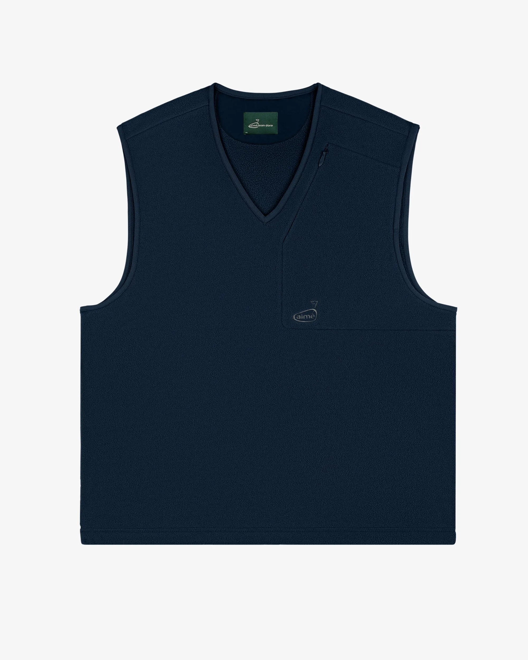 - • Navy fleece vest• Embroidered ALD Golf logos at chest & back• Grosgrain binding at neck & armholes• Regular fit• One pocket at left chest with invisible zipper closure• 100% Polyester• Machine wash• Made in China