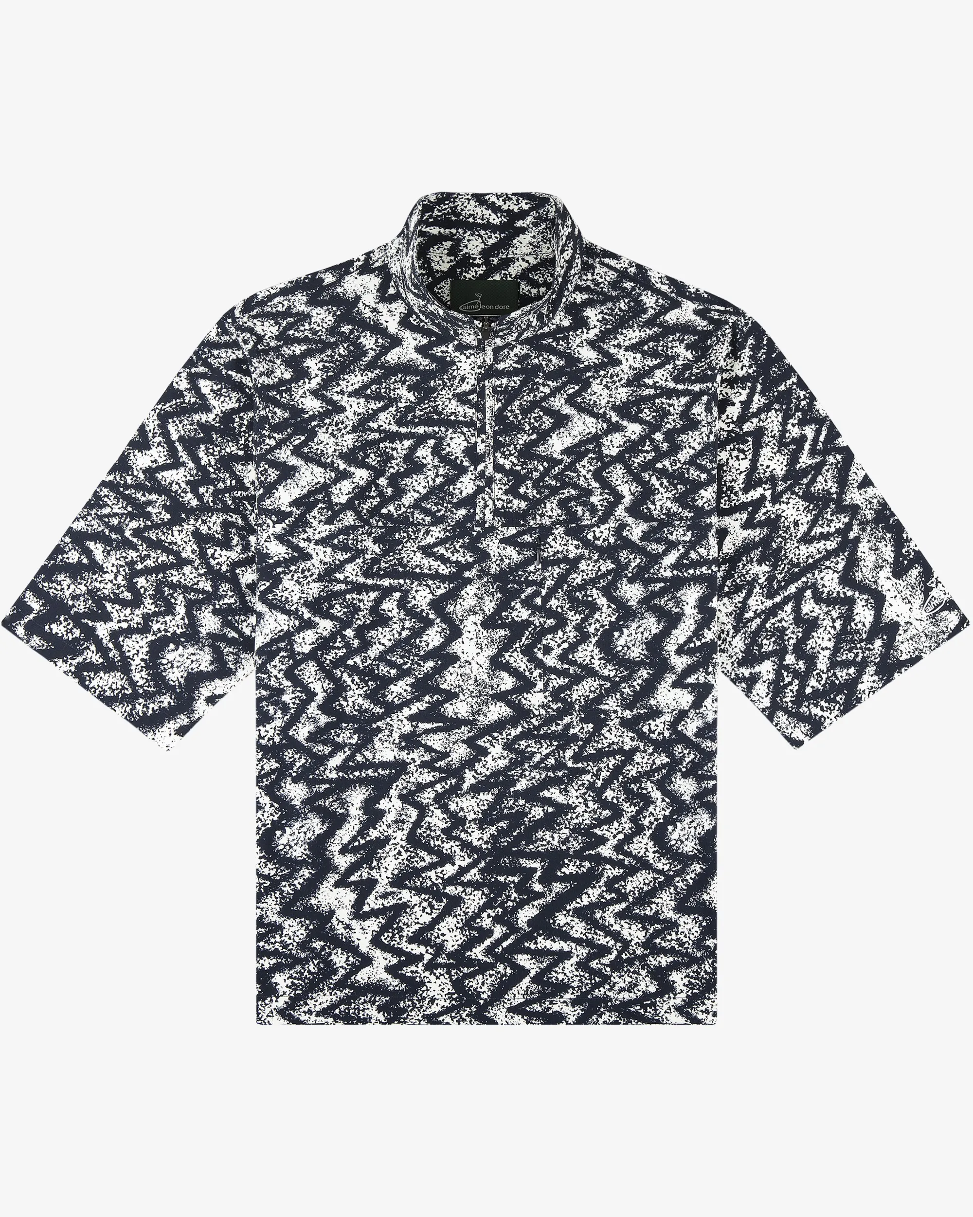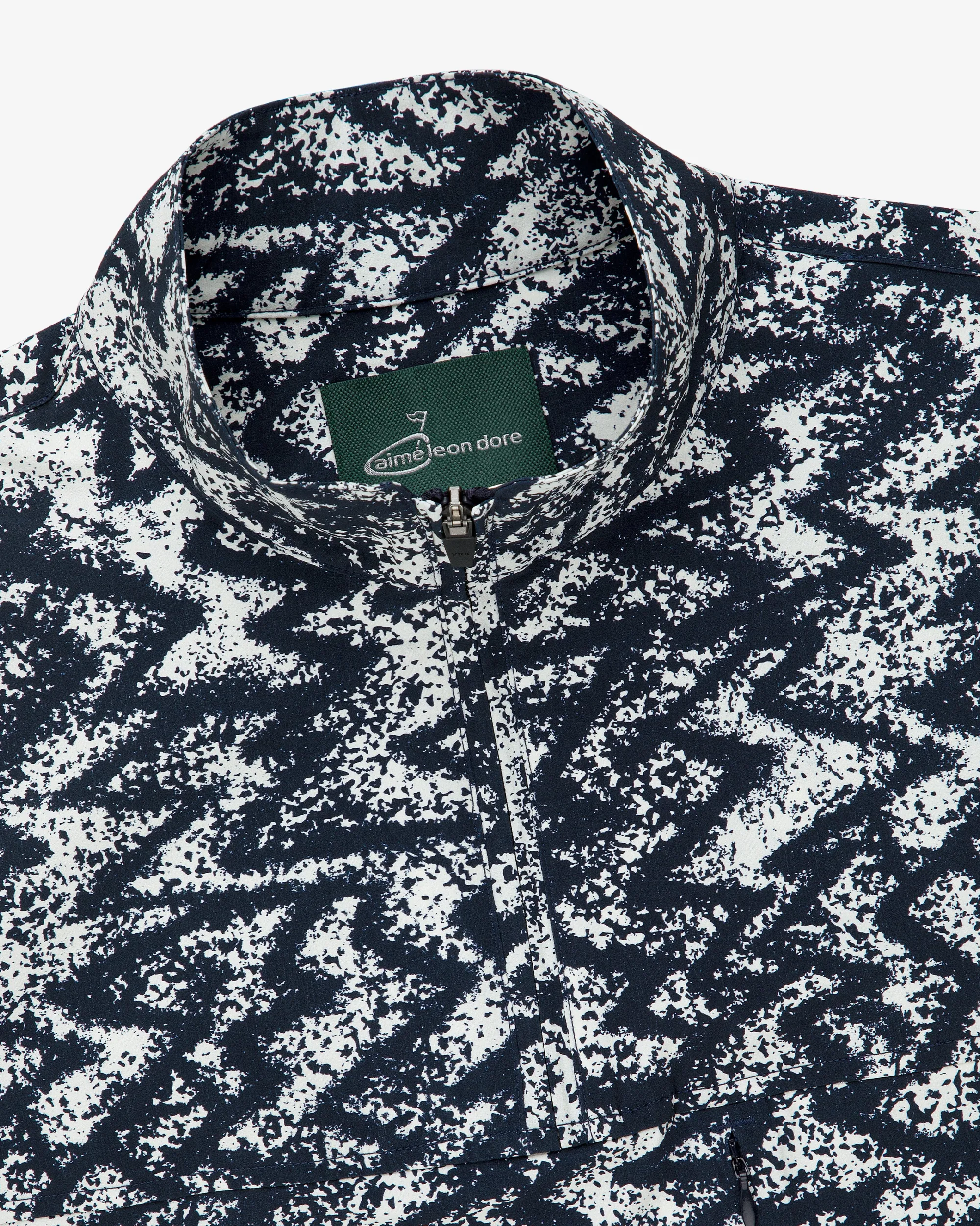 - • Navy & white pullover• Patterned artwork throughout• Embroidered ALD Golf logo at sleeve• Vents at side seams• Regular fit• Quarter zip closure at front• One pocket at left chest with invisible zipper closure• 81% Nylon, 19% Elastane• Machine wash• Made in China
