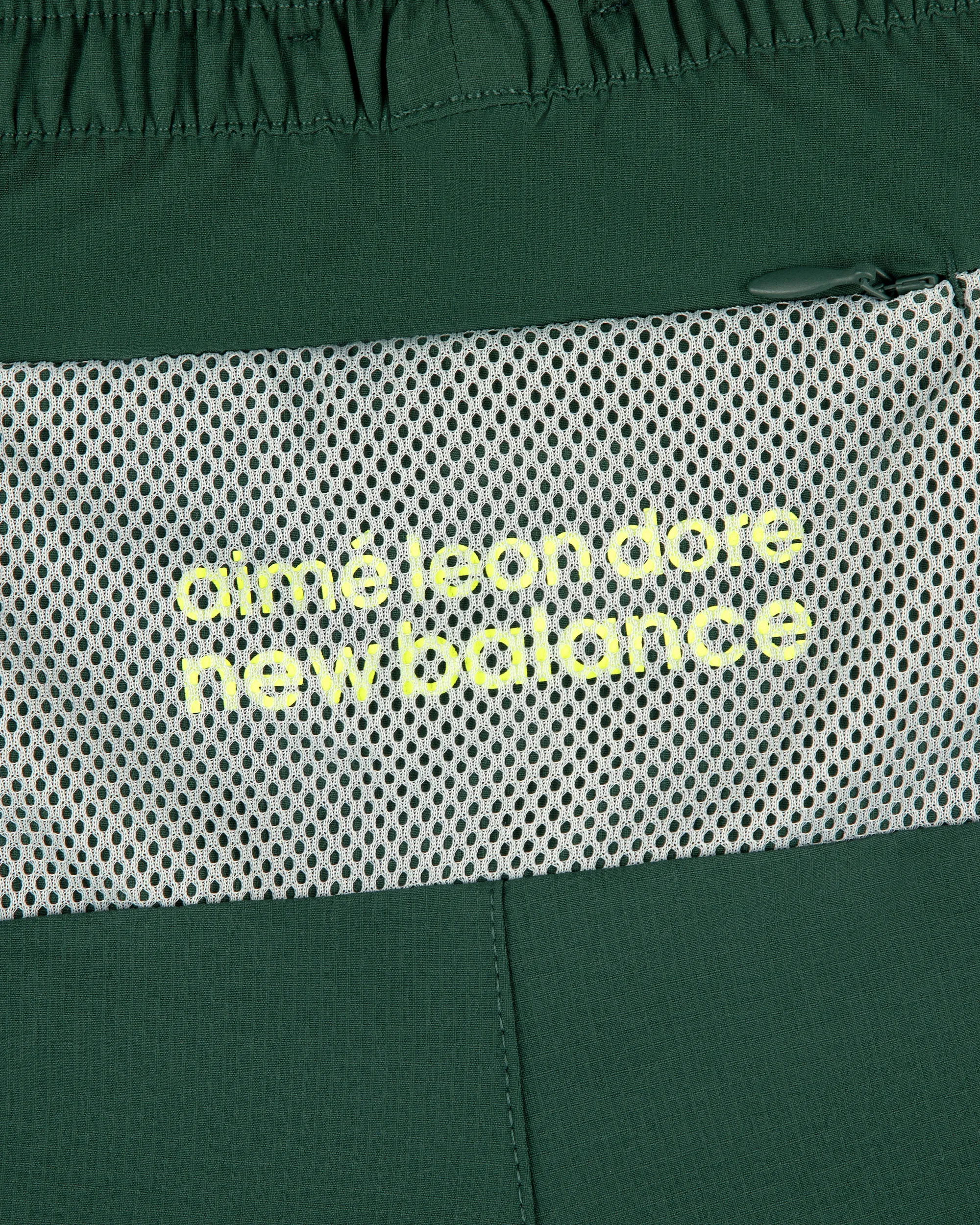- • Green & grey shorts• Nylon fabric• Printed New Balance & Aimé Leon Dore logos at front & back• Contrast mesh paneling at sides & back• Straight fit• Elasticated waistband with• Two hand pockets at side seams• One pocket at back yoke with invisible zipper closure• 86% Nylon, 14% Elastane• Machine wash• Made in Vietnam