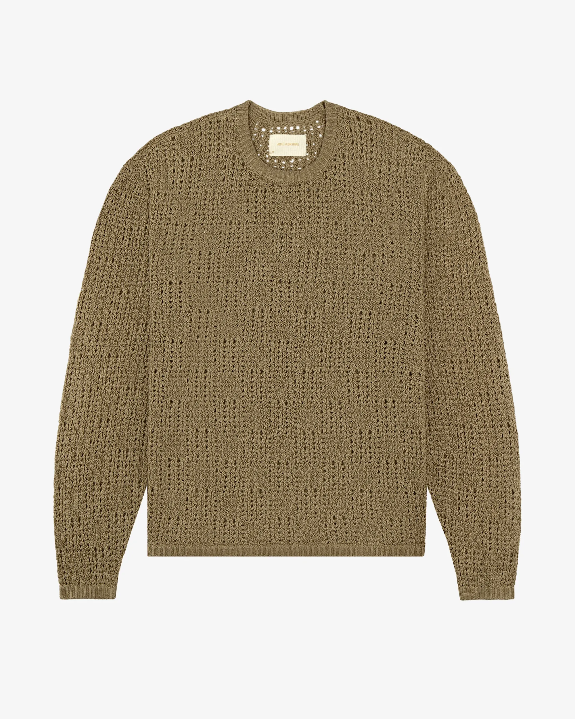 - • Olive crewneck sweater• Checkerboard jacquard linen fabric• Regular fit• Ribbed collar, cuffs, & hem• 100% Linen• Dry clean only• Made in China