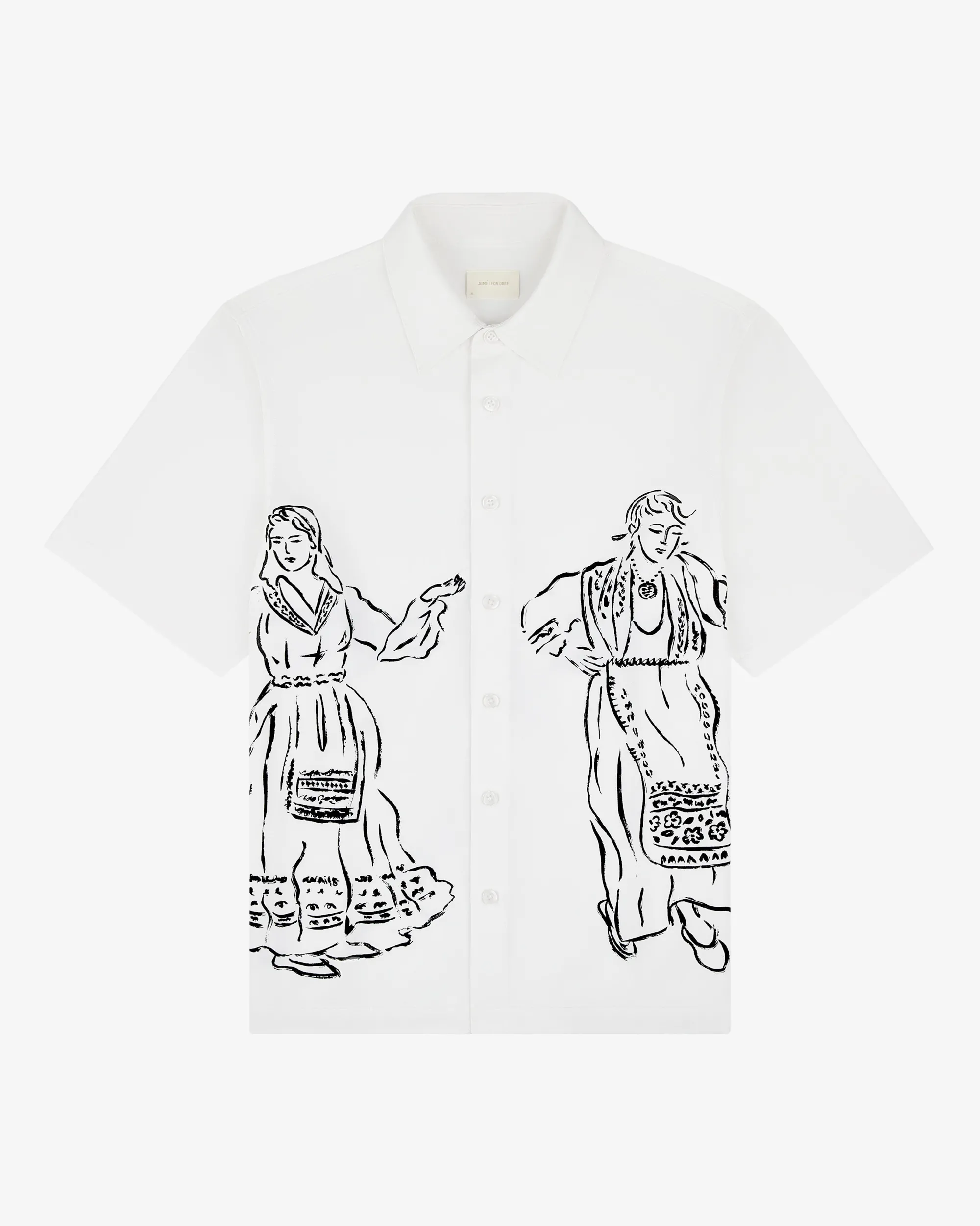 - • White shirt• Printed artwork at front & back• Boxy fit• Button closure at front• 100% Rayon• Machine wash• Made in China