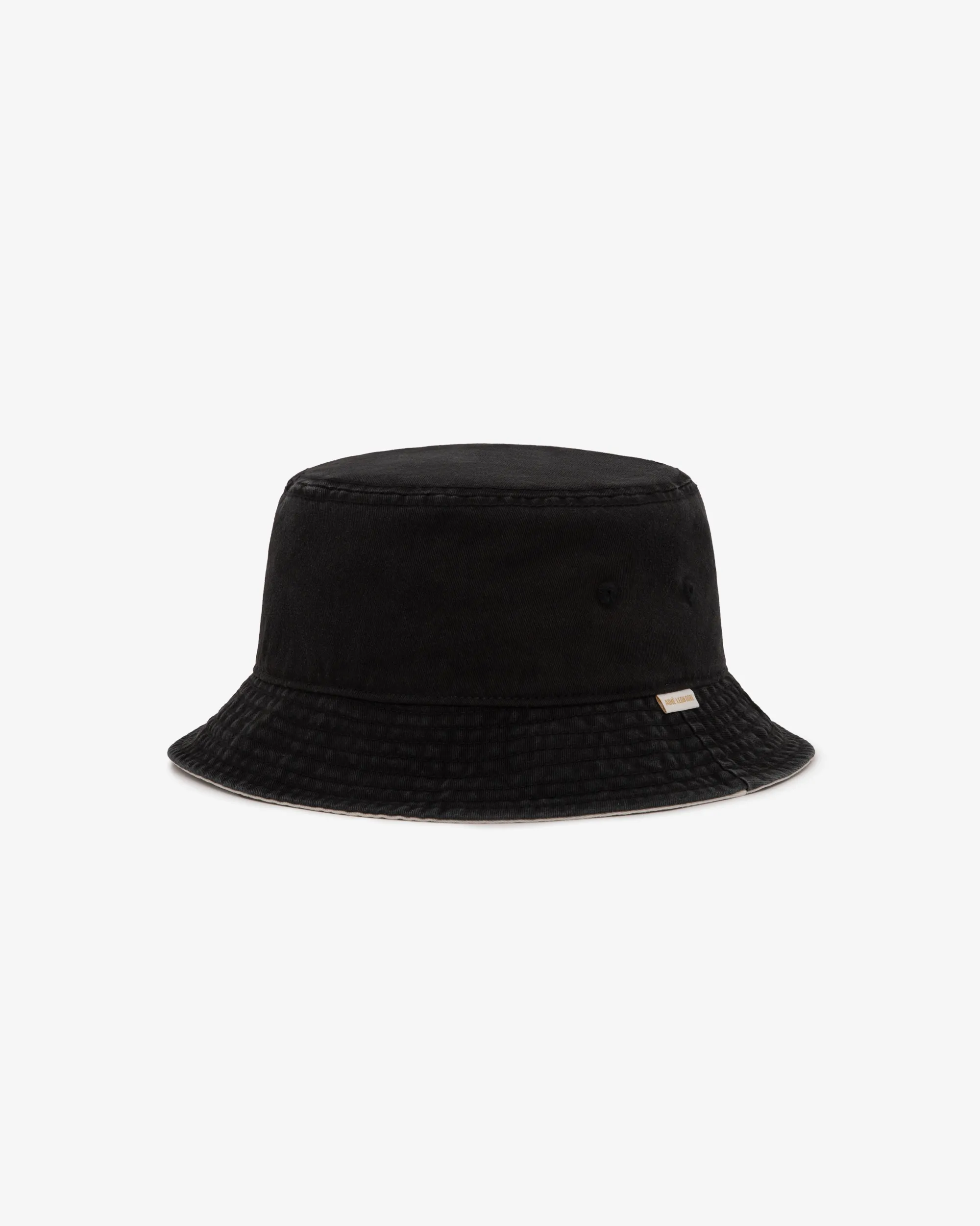 - • Black bucket hat• Cotton twill fabric• Contrast underbrim with printed logo• Stitched eyelets• Features branded woven loop label• 100% Cotton• Do not wash• Made in China