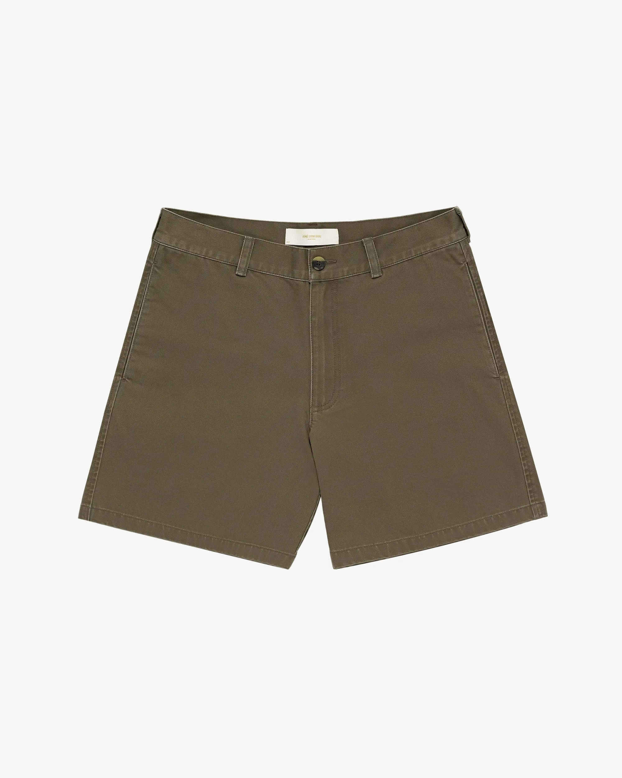 - • Olive chino shorts• Two darts at back• Regular fit• Button closure with zipper fly• Two hand pockets at side seams• Two double welt pockets at back with button closure• Features branded woven loop label• 100% Cotton• Machine wash• Made in China