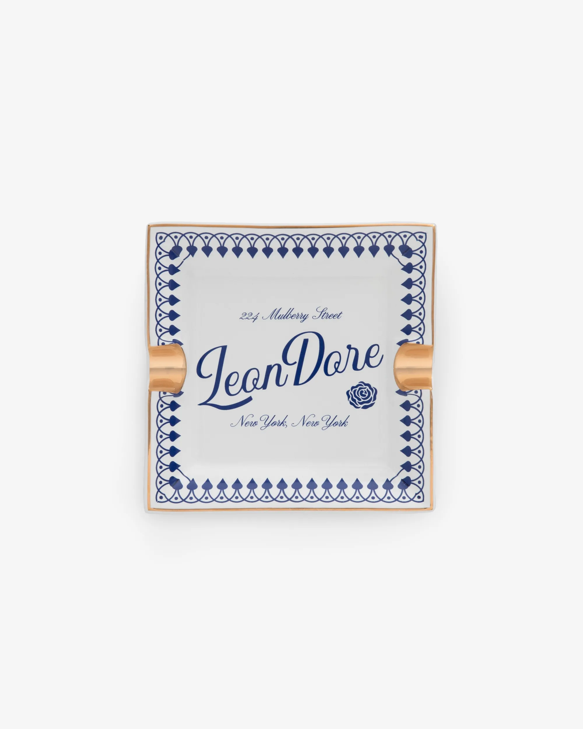 - • White & blue ashtray• Printed lounge graphic at front• Gold foil rim• Printed logo at back• 100% Ceramic• Wipe clean• Made in China