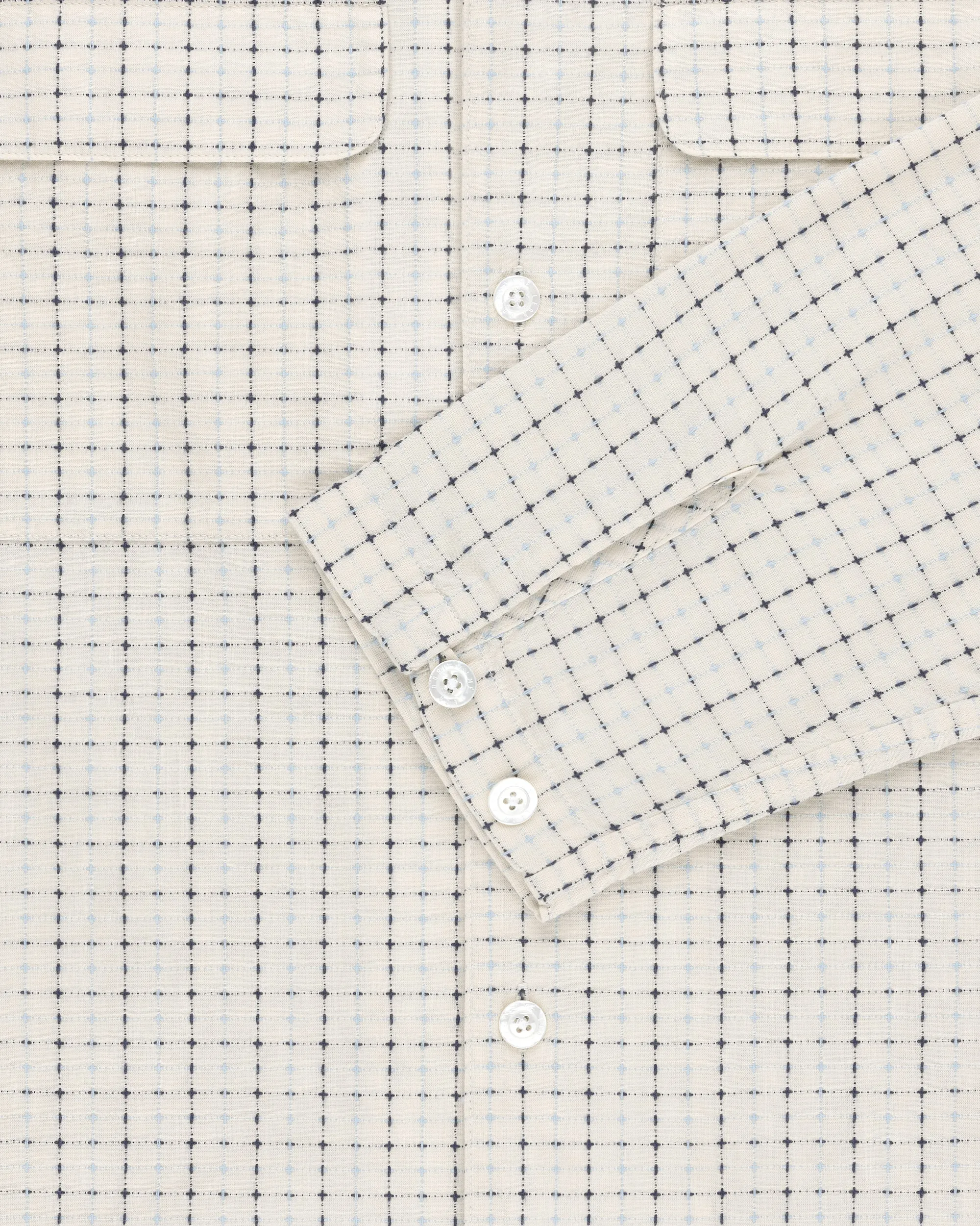 - • Cream shirt• Garment washed yarn dyed fabric• Camp collar construction• Boxy fit• Pleats at sleeves with button closure• Button closure at front• Two flap pockets at chest• Features branded woven loop label• 100% Cotton• Machine wash• Made in China