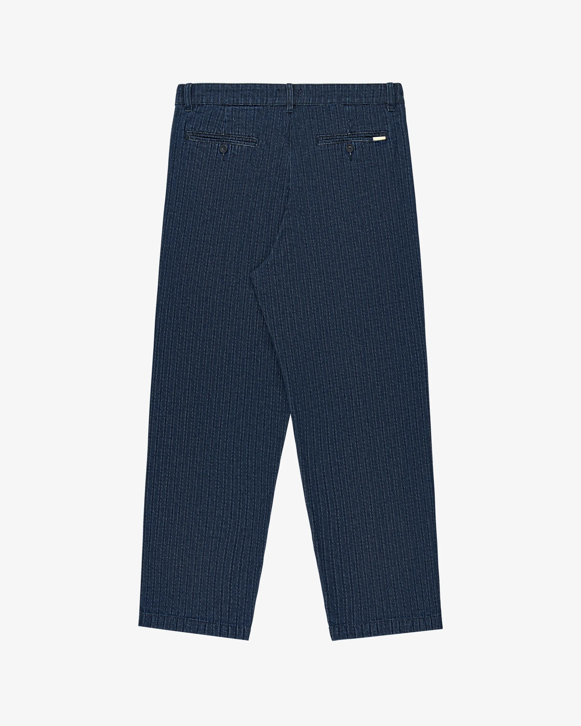 - • Navy pants• Single pleats at front• Darts at back• Regular fit• Button closure with zipper fly• Two on seam hand pockets• Two double besom pockets at back• Features branded woven loop label• 99% Cotton, 1% Elastane• Machine wash• Made in China