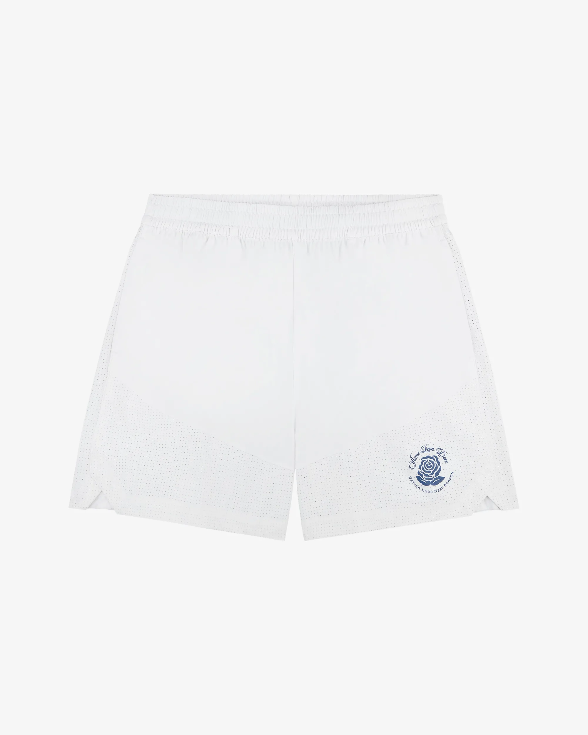 - • White shorts• Printed artwork at lower left leg• Contrast panels at sides• Cropped fit• Elasticated waistband with interior drawstrings• Two on-seam pockets at sides• One zipper pocket at back• 86% Nylon, 14% Elastane• Machine wash• Made in Vietnam