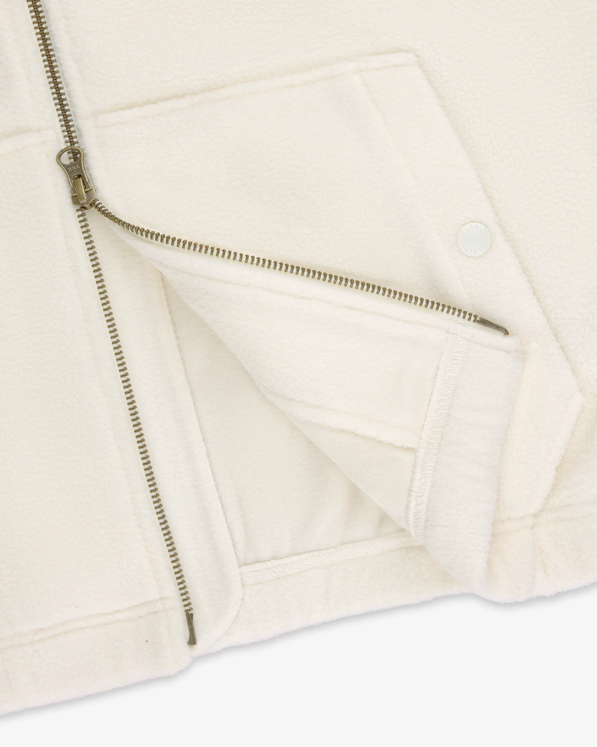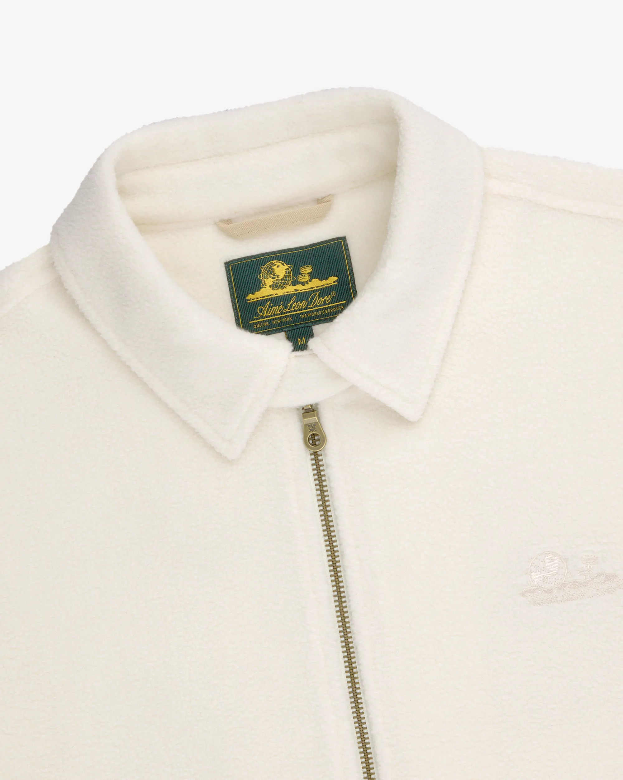 - • Cream fleece jacket• Embroidered Unisphere logo at back & chest• Detachable throat latch at neck with contrast under collar• Locker loop at interior neck• Regular fit• Two-way zipper closure at front• Two hand pockets at front with snap closure• Body: 100% Polyester• Detail: 100% Cotton• Machine wash• Made in China