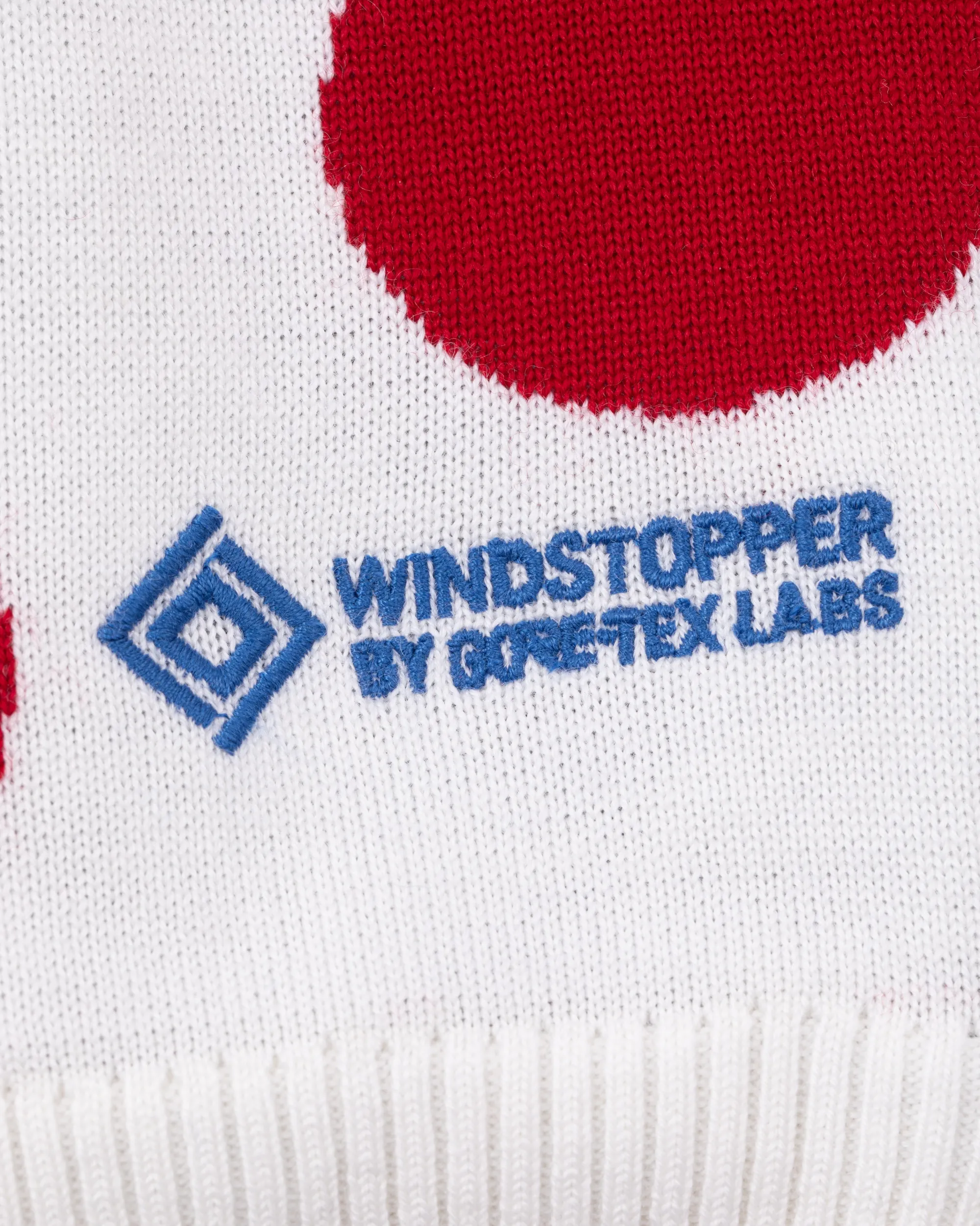 - • Cream, blue, & red cardigan• Merino wool fabric• Jacquard polka dot pattern throughout• Jacquard WINDSTOPPER® by GORE-TEX LABS logo at back• Jacquard Aimé Leon Dore logo at chest• Embroidered WINDSTOPPER® by GORE-TEX LABS artwork at sleeve & cuff• Regular fit• Concealed zip closure at front• Three jersey pockets at back body• WINDSTOPPER® by GORE-TEX LABS lining• Ribbed collar, cuffs, & hem• Body: 100% Wool• Lining: 100% Polyester• Dry clean only• Made in China